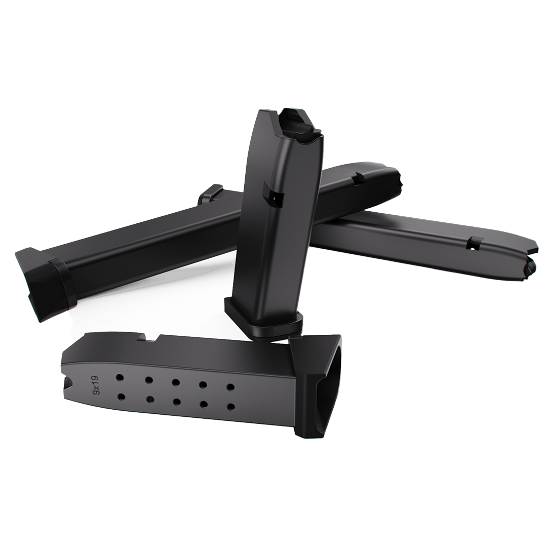 Included in this file pack are an assortment of 9mm & 10mm Glock mags. These mags were developed from scratch to be robust and simple. They are designed to work with